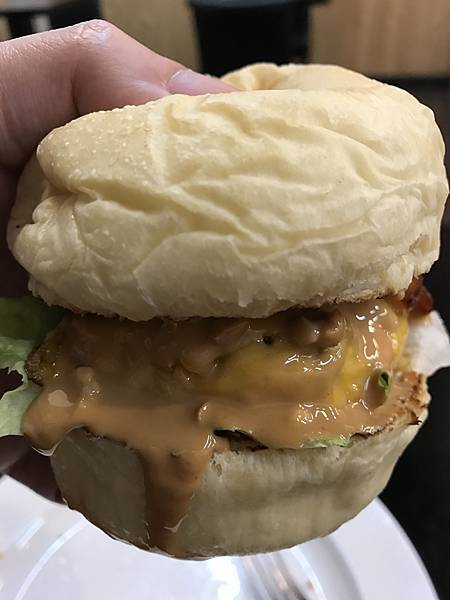 乍看之下,牛肉堡個頭不大,但光吃完它,竟然就已經8分飽,