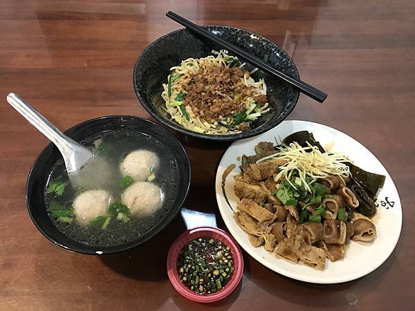 大感動食評:今天吃是乾意麵、貢丸湯與現切小菜,大腸、